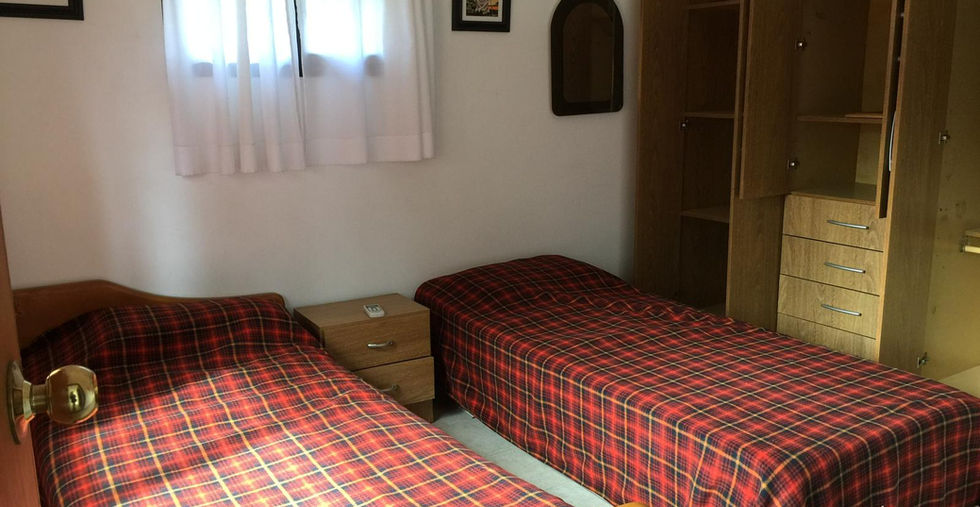 Segundo dormitorio con dos camas individuales y aire acondicionado.